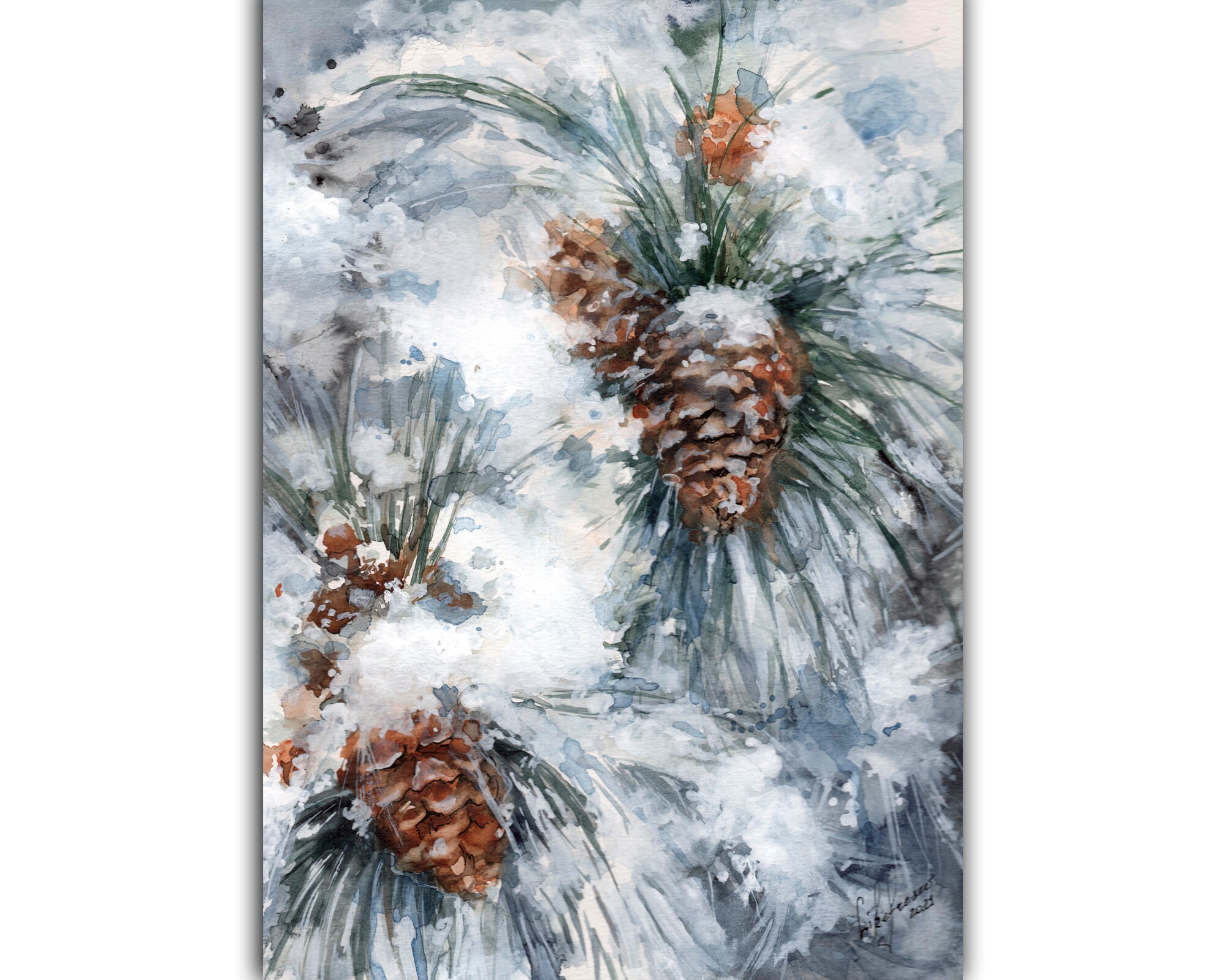 Pine Cone Art Print Wall Decor Watercolor Painting Etsy